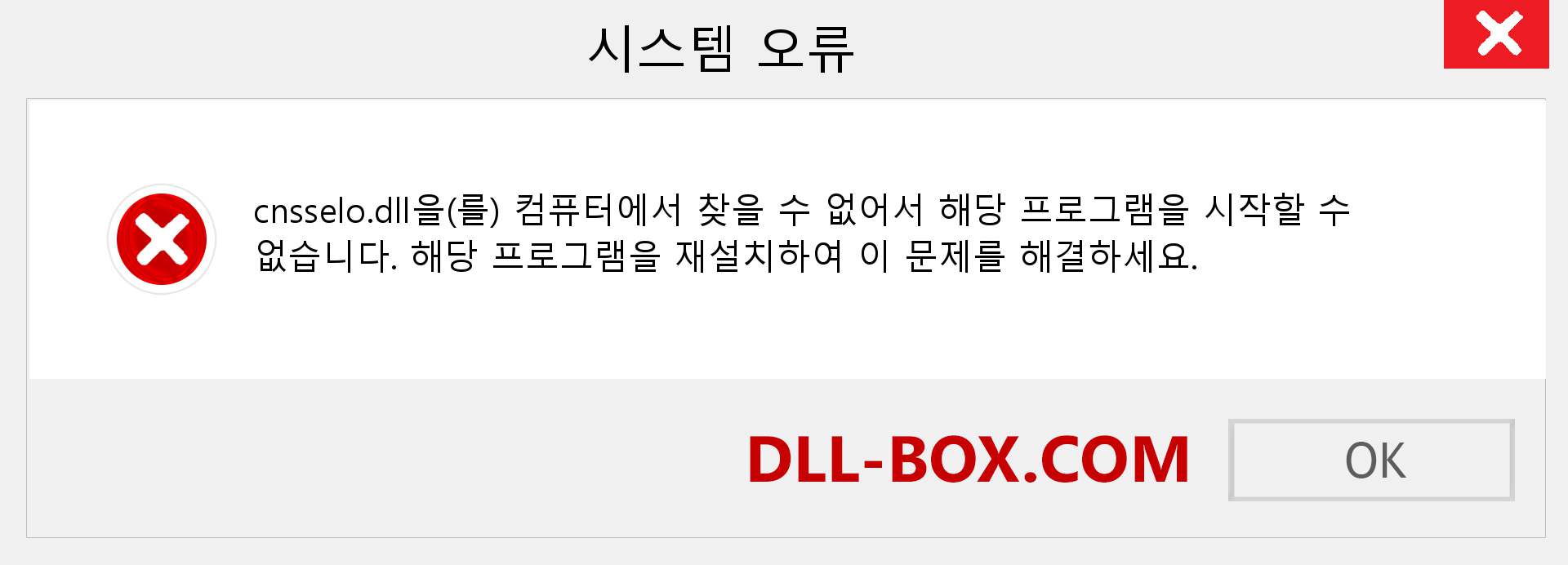 2. 시작하는 동안 문제가 발생했습니다. cnsselo.dll 지정된 모듈을 찾을 수 없습니다.